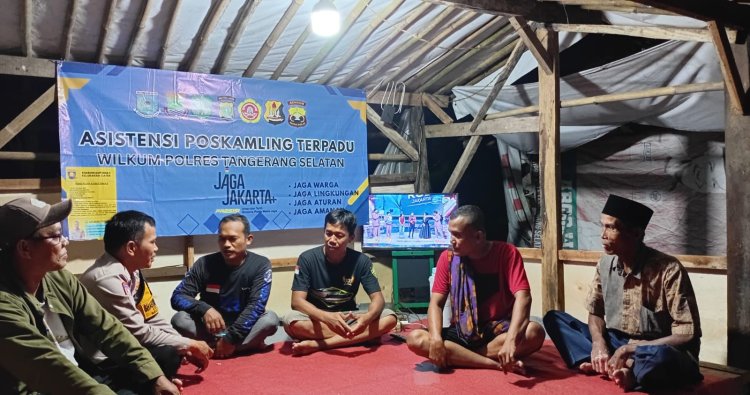 TANGSEL - Bhabinkamtibmas Kelurahan Ciater Polsek Serpong, Aipda Suparman, melaksanakan kegiatan pengecekan Poskamling Terpadu di Kampung Ciater Tengah RT 08/06, Kelurahan Ciater, Kecamatan Serpong, Kota Tangerang Selatan, Senin (13/10).